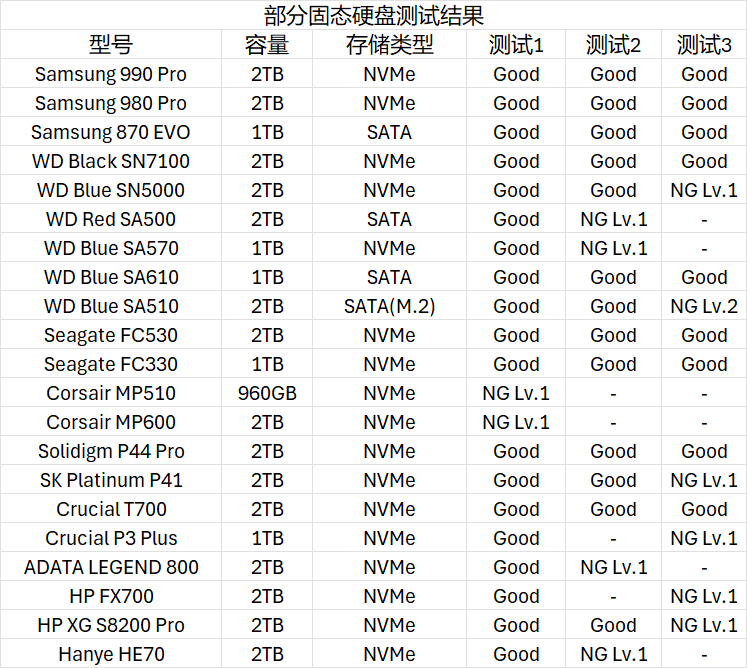 测试发现在长时间写入数据后 Windows 11 首先会无法识别固态硬盘,在重启系统后固态硬盘包含的分区也会无法访问,网友还注意到使用群联主控芯片 PS5012-E12 的固态硬盘更容易受到该问题的影响。 需要强调的是目前这些测试均来自网友,微软官方和固态硬盘制造商都没有确认这个问题,所以暂时还不清楚问题发生的根本原因以及潜在的影响范围有多大。 如果本身 Windows 11 就安装在固态硬盘上且这块固态硬盘掉盘会怎样呢?答案是黑屏死机 (BSOD),因为系统检测不到硬盘或者无法读取分区数据所以直接瘫痪。 作为测试方案网友在多个不同品牌和型号的固态硬盘上进行测试,使用赛博朋克 2077 作为测试源,该游戏安装时会出现海量的数据读写,最终用于测试固态硬盘是否出现故障。 测试结果分为两种:NG Lv.1 代表写入过程中 Windows 11 无法识别固态硬盘,但重启系统后还可以恢复;NG Lv.2 则是重启后也不能恢复,也就是固态硬盘彻底掉盘无法再识别出来。