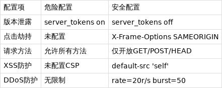 1. 胸前挂身份证的服务器:server_tokens off配置"黑客正在下载你的数据库备份"——当这条告警弹出时,老王刚泡好咖啡。导致这场灾难的不是什么0day漏洞,而是Nginx默认配置里明晃晃的版本号泄露。就像在胸前挂着"我用Nginx 1.18.0"的身份证,把服务器的软肋暴露给全世界。 漏洞原理:默认配置下,Nginx会在响应头中泄露精确版本号(如Server: nginx/1.21.0)。黑客可通过CVE数据库快速匹配对应版本漏洞,去年某教育机构因此被拖库10万条学生信息。 修复代码: