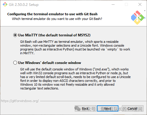 Git下载可以在官方网站进行,选择对应系统版本和位数下载即可。 官方网站: https://git-scm.com/ 如果国外网站下载速度过慢,或是无法正常下载,可以选择在镜像站进行下载。 CNPM Binaries Mirror: https://registry.npmmirror.com/binary.html?path=git-for-windows 下载完成后,进入到安装步骤环节。 Git安装 1.双击下载后的exe文件,进入安装界面。 2.阅读安装说明,阅读完毕,点击【NEXT】进入下一步; 3.选择并设置安装路径,选择完毕,点击【NEXT】进入下一步; 4. 选择安装组件,根据个人需要进行选择 Additional icons:是否创建桌面快捷方式 5. 选择是否在开始菜单中添加Git 若无需要添加,则勾选【Don’ t create a Start Menu folder】选项;也可以选择其他文件夹,点击Browse自行修改,选择完毕,点击【NEXT】进入下一步; 6.选择默认编辑器 默认Vim,可根据实际进行修改,选择完毕,点击【NEXT】进入下一步; 7.设置仓库初始分支 默认选项中的Let Git decide设置初始分支为master,如需选择修改,可选择下方Override the default branch name for new repositories,选择完毕,点击【NEXT】进入下一步; 8. 设置PATH环境 默认为【Git from the command line and also form 3rd-party software】,即通过命令行及第三方工具使用Git,选择完毕,点击【NEXT】进入下一步; 9.选择ssh可执行文件exe 默认选项为使用Git自带的ssh.exe,也可以根据个人需要选择其他选项,选择完毕,点击【NEXT】进入下一步; 10. 选择HTTP连接 选择默认SSL连接,选择完毕,点击【NEXT】进入下一步; 11. 配置行尾换行符 选择默认选项【Checkout Windows-style, commit Unix-style line endings】,选择完毕,点击【NEXT】进入下一步; 12. 选择Git Bash使用的终端模拟器 通常使用默认的Use MinTTY方式,选择完毕,点击【NEXT】进入下一步; 13. 设置git pull的默认行为 14.配置Git凭证 保持默认,点击【NEXT】进入下一步; 通常选择默认,选择完毕,点击【Install】进入下一步; 16.完成安装 至此,Git安装完成。 阅读原文:原文链接 该文章在 2025/8/25 13:09:10 编辑过 |