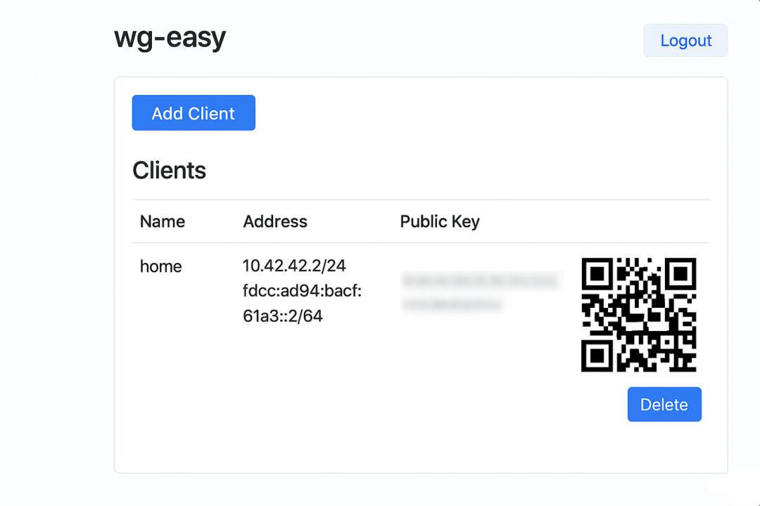 在上一篇《实战系列一:用 Podman + WireGuard 打造你的下一代轻量级 VPN(UI 可视化管理)》中,我们聊到如何用 Podman 打造轻量级 VPN。今天给大家带来一个更“傻瓜式”的方案 —— wg-easy。