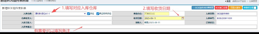 5.提交之后,可以在左侧的功能菜单里找到“BOE组件来料入库单”,点击进入 ![]()