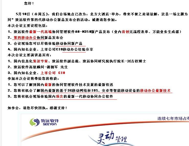 昨天看到一个用户发了一张图片,说起致远软件(就是换了马甲的原用友致远)正在他们的城市举办OA产品的宣传活动: