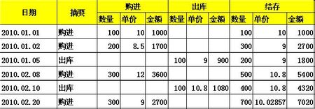 一、移动加权平均法 时值一每次进货的成本加上原有的库存存货的成本,除以每次进货数量加上原有库存存货的数量,据以计算加权平均单位成本,作为在下次进货前计算各次发出存货成本依据的一种方法。 二、计算公式如下: 1.存货单位成本=(原有库存存货的实际成本+本次进货的实际成本)/(原有库存存货数量+本次进货数量) 2.本次发出存货的成本=本次发出存货数量*本次发货前的实际成本 3.本月月末库存存货成本=月末库存存货的数量*本月月末存货单位成本 采用移动平均法能够使企业管理当局及时了解存货的结存情况,计算的平均单位成本以及发出和结存的存货成本比较客观。但由于每次收货都要计算一次平均单价,计算工作量较大,对收发较频繁的企业不适用。 示例: 某企业2002年7月1日结存A材料100kg,实际成本10元/kg;7月10日和18日分别购入该材料300kg和200kg,实际成本分别为12元/kg和13元/kg;7月13日厂部领用材料180kg,7月27日车间领用材料270kg。分别用先进先出法、加权平均法、移加权平均法计算当前库存金额。 A材料 量 成本 该文章在 2012/12/17 22:50:26 编辑过