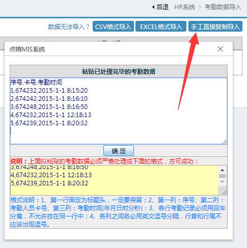 按照要求的格式,复制进去,不需要浏览器做任何设置,就一定可以正确导入考勤记录了。