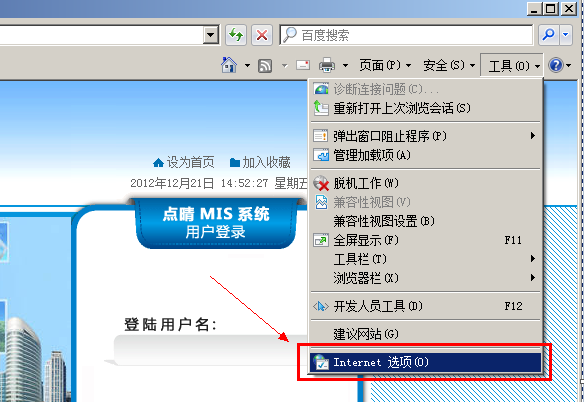 注意:不同版本IE选项的位置可能不同。建议使用微软IE浏览器。