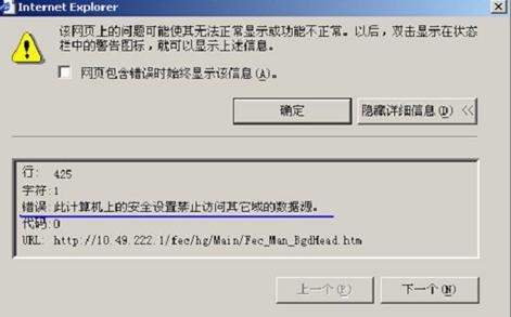 完成上述操作后,“此计算机上的安全设置禁止访问其它域的数据源”应不再出现,但如果出现其他错误信息,则应参考其他处理办法。