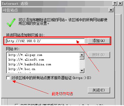 操作:将(1)中复制的页面地址,粘贴至此处(IE可能会自动跳出地址)点【添加】按钮后,【关闭】--【确认】上述操作。
