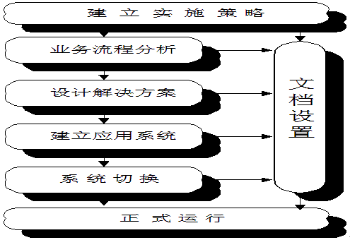 图 2 PJM的过程和生命周期分类 AIM-应用系统实施方法论 Oracle公司在全球经过多年的应用产品实施而提炼好的结构化实施方法,它能满足用户的各种需求,从定义用户的实施方法、策略到新的系统上线运行,AIM包含了所有不可缺少的实施步骤。因而尽可能地减少用户的实施风险,以保证快速、高质量地实施Oracle应用系统。 AIM分为七个阶段,如图所示: 第一阶段:建立实施策略 主要从商务和技术上来计划项目的范围,并确定项目的目标。这一阶段的工作,包括建立由公司主要领导为首的项目实施领导小组和各部门有关人员参加的项目实施小组,并开始对员工进行初步的业务管理观念和方法培训。具体制定出企业实施应用管理的策略和目标。 第二阶段:业务流程分析 主要是定义项目的内容,即对现行的管理进行仔细地回顾和描述,从而认识项目的业务和技术上的具体要求。一般在这个分阶段要编写一个项目定义分析报告,可以更多地是借助于IPO图的形式来描述目前的流程,并从中找出希望改进的地方,为进一步解决方案的设计创造条件。为此,需对项目实施小组的成员进行比较系统的业务管理的概念和Oracle系统软件功能层次的培训。 第三阶段:设计解决方案 主要是对上阶段形成的业务分析流程,结合业务管理的基本概念和具体的软件功能,逐项进行回顾、分析,以便对目前每个管理业务流程,提出解决方案。解决方案也许是直接可以套用Oracle应用系统中某些功能,也许是对现行管理流程作一些改进,也可能是对软件系统作一些必要的二次开发。这时一般应编写项目说明书之类的文档,作为一个里程碑也作为建立系统的设计任务书。 第四阶段:建立应用系统 本阶段需根据前一阶段拟订的方案,对管理上(或组织上)需改进之处制定改进方案,包括调整分工、规范流程、统一方法、标准信息编码等。从软件来讲,系统初始化设计及二次开发工作可开始进行。这样建立起一个符合企业管理思想的应用系统。此时大量的基础数据的整理工作也将着手进行。 第五阶段:文档编码 在建立应用系统的同时,除了必须对软件进行二次开发,按软件工程要求提供必须的文档以外,对管理要改进的流程及方法等方面,也必须编写或修改原来的制度、职责、流程图。这时,系统一旦已建立起来,可着手对最终用户的主要应用进行培训。 第六阶段:系统切换 在这个阶段,为了减少系统实施时的风险,各职能部门分别按照自己的日常业务活动,参照已文档化的流程,运行计算机系统进行测试,以证实其系统是基本可行的。这时才开始正式向新系统输入数据、创建初态、定义参数、开始运行。为了保证切换的成功,这时项目领导小组要求及时地发布许多指令,来逐步地进行系统地切换。一般来讲,能有一个新老系统并行的运行期间,风险可更小些。 第七阶段:运行维护 在并行一段时间后,事实证明系统是安全、可靠、可行的,那么可以正式投入运行。并在运行中作好有关的记录和报告,并及时地发现运行中的问题,以便进行维护和提高 三、J.D.E实施方法——R.E.P.方法 JDEdwards深知软件实施时所面临的挑战,以及潜在的附加价值。请看我们所提供的产品。我们在软件业中享有制作弹性及适应性俱佳的商业软件的卓越声誉。我们的产品皆具有稳定的集成性的结构,再加上足可与您的企业做天衣无缝的搭配之功能,巧妙地融合了规律性的弹性。 我们的软件实施也具备同样的特点。我们所设计的软件实施方法-R.E.P.方法,采用的是稳固结构与弹性相互制衡的方法。此方法已成为我们技术的标准。 E.P.指的是快速,经济,可预测的实施方法。这也是我们在实施每一个产品时的目标(更是我们经营业务的方式)。但R.E.P不单是一个响亮的口号,它还是实施JDE软件的一项重要策略,是结合您的专业与我们的经验的最好资产。 R.E.P可以让您所花费的时间及努力得到应有的投资报酬,因而减低长期的投资成本。它鼓励您经由降低所需的任何训练,咨询及支援,以便享有最终的软件方案自主权,换言之,我们提供一套计划,让您能将高品质的软件转变为高品质的企业软件方案。 或者您觉得我们过于强调质量及相互的合作关系,但当您开始应用我们的软件时,就会感到我们经验丰富的客户服务群,及客户需求至上的做法,将会令您获益匪浅。 达成一致期望 E.P.是一个学习过程----不仅对您而言(就我们的软件所提供的客户服务),对我们来说也是一样。在此阶段中,我们会让我们的顾问与您的项目实施小组彼此熟悉,以便让他们在彼此的期望,资源承诺,实施风险及工作计划上达成共识。 培训项目小组 您唯有对我们的软件了解愈深入,才愈能使其真正地符合您的要求, 并愈能发挥它在您软件方案中所扮演的角色。R.E.P的训练阶段可让您的项目小组迅速了解JDE功能,以便让您开始看到此软件将如何在组织中实际运作。 此训练显著在参与性及个案研究的环境中进行,能确保您在项目实施过程中有充分的知识和功效。 分析需求 您一旦了解我们的软件后,我们就会开始审视您对整套系统的需求,以达到您的目标。透过有针对性的谈话,我们会清楚地找出您的症结所在及所面临的企业问题,谈话重点放在筛选出潜在的重新设计流程的可能性,决定您的报表需求,以及为您的特殊环境所提供的配置建议。 会议室模拟测试 什么是判定您软件性能的最