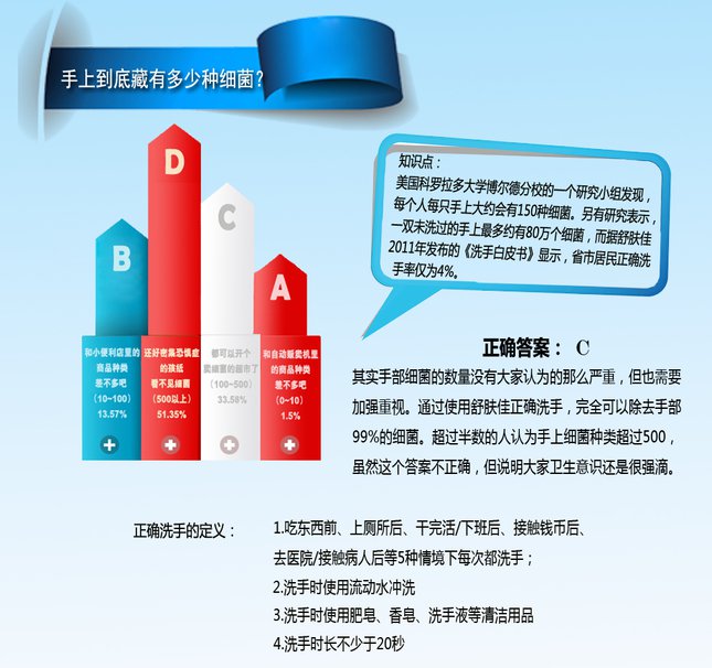 ![]() 图片来自:hypnose-skanderborg.dk。 过去的一百多年以来,人类的预期寿命(Life Expectancy at Birth)从20世纪初的31岁,已经延长到了今天的接近70岁[1]。人类是如何创造出这样巨大的奇迹的?说起来你可能会联想到抗生素、疫苗、器官移植等现代医疗,然而,一个平凡到让人几乎无视的日常活动在这一历程中扮演了重要的角色,那就是——洗手。 绅士的手也不洁净人类是在遭受了非常惨痛的损失之后才突然意识到洗手的重要性的。19世纪的欧洲,产妇的死亡率非常高,近十分之一的产妇会死于分娩和分娩后的感染。那时很多人的个人卫生习惯都非常糟糕。 后经匈牙利籍产科大夫伊格纳兹•赛默维斯Ignaz Semmelweis研究发现,一诊区的实习医生通常是刚剖完尸体就赶去接生婴儿——那时候的人认为“一个绅士的手,自然是洁净的”;而产婆们是从来不做尸检的。赛默维斯于是命令医生必须先用漂白粉溶液洗手再接生。这一简单的命令使得产妇产褥热的发病率下降到了之前的十分之一。今天我们知道,产褥热实际上是链球菌造成的,是那些实习医生的手把病菌从尸体带到了产妇身上。谁说绅士的手就是洁净的? 你手上的巨大细菌群那么,即使我们普通人从不像医生那样接触尸体,我们的手上到底有多少细菌呢?据美国科罗拉多大学博尔德分校的一个研究小组发现,每个人每只手上大约会有150种细菌。另有研究表示,一双未洗过的手上最多约有80万个细菌!不过,毋需恐慌,即使有这么多种,数量如此巨大的细菌,通过正确的洗手方法,它们都是可以被去除的。 根据4月初果壳网联合舒肤佳发起的“国民洗手调查”的结果发现:超过50%的人认为手上的细菌超过500种,15%的人认为手部细菌小于15%。,说明大家卫生意识还是很强的。
