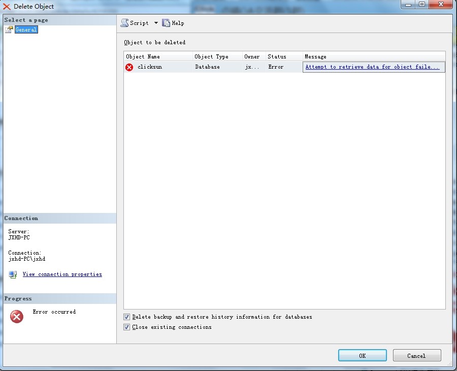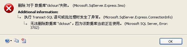 点晴永久免费OA迁移系统时提示:删除对于数据库"clicksun"失败,无法删除数据库,因为当前正在使用