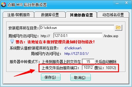 现在有个问题,外网发送文件怎么设置呢?? 点晴客服5 2014-04-11 17:19:13 能访问就能发送啊 点晴客服5 2014-04-11 17:19:19 你是说点晴MIS信息通? 大浪淘沙2014-04-11 17:20:49 信息通,是滴 点晴客服5 2014-04-11 17:21:03 哦,这个必须开放10312端口 也就是要设置多一个端口转向到内网服务器 大浪淘沙2014-04-11 17:21:45 我用的是花生壳, 点晴客服5 2014-04-11 17:21:50 不一定是10312,也可以在服务器端改为其他端口,总之文件传送和网页访问不是用同一个端口 大浪淘沙2014-04-11 17:22:12 在花生壳那设置吗?? 点晴客服5 2014-04-11 17:22:25 新版花生壳提供了2个端口,正好一个用来做WEB访问、一个用来传送文件 是的,在花生壳上设置 文件传送端口在服务器端可以更改: ![]() 大浪淘沙2014-04-11 17:23:49 @点晴客服5 3q,搞定 ![]() 该文章在 2014/4/11 17:29:33 编辑过 |