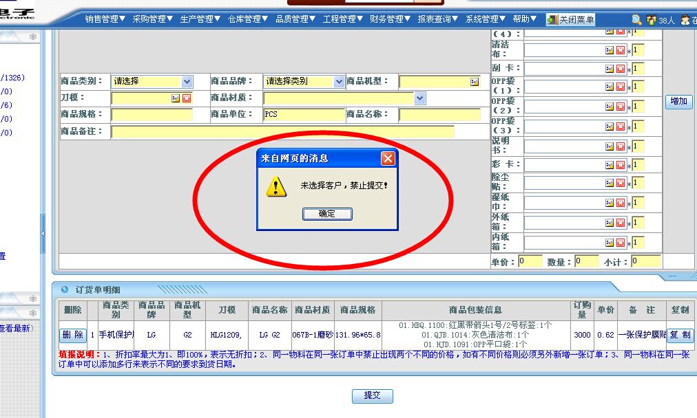 [点晴模切ERP]保护膜下单编辑时提示未选择客户