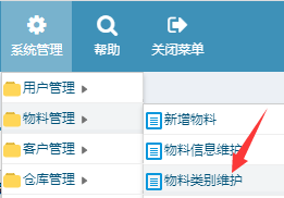 步骤 系统管理——物料管理——物料类别维护,如图所示:
