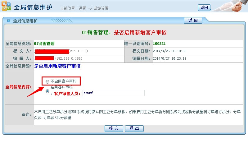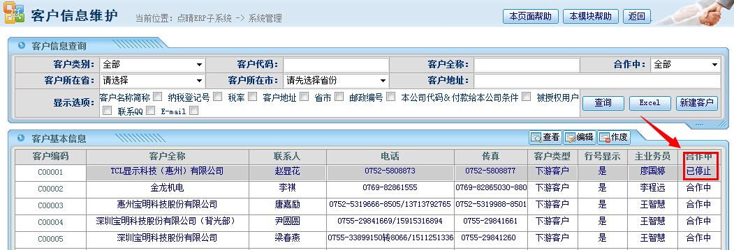 疑问: 原因:启用了新增客户审核功能,启用此功能新增的客户的显示状态会显示不合作,如图: 解决办法:不启用了新增客户审核功能即可,操作如下图示: 点晴模切ERP更多信息:http://moqie.clicksun.cn,联系电话:4001861886 该文章在 2014/9/13 15:44:49 编辑过 |