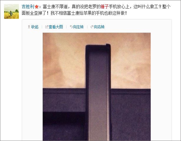 7月8日,罗永浩的锤子手机开始发货,声称首批日发货量在几百台到一千台之间。但据网友根据客户晒出的发票编号推算,真实的日发货量应该不到300台。为什么首批发货量这么少?罗永浩解释说是因为品控标准非常严格,声称:“其实,现在我们产线上不能通过质检的大多数产品,做工也要比绝大多数手机厂商的产品好很多。目前为止,我们送测的工程机在做工方面几乎得到了所有媒体的一致好评,但和工程机一样水准的做工,在我们的产线上仍然是不良品。”“我们只要放松一点点品控标准,就会带来产能上的明显提升,但相信这不是你们希望的结果……”“我们的硬件工程师核心团队已经全部驻厂一两个月了,我们将竭尽全力,在不放松品控标准的前提下尽快为大家发货……” 那么在如此严格的品控标准下放出来的机器做工是什么样的呢?收到首批锤子手机的客户,纷纷在网上晒出收到的真机,投诉发现的种种问题,归纳如下: 一、多人投诉锤子手机做工粗糙,材质低廉,边框缺损,“有碎玻璃的扎手感觉。仔细一看是屏幕边框脆裂了,大大小小的有几处,最严重的一处已经使得手机漏光了。又用指甲在屏幕边框其他几个完整的位置稍用力划了几下,也留下了可见的划痕,还刺手。”“我用指甲稍用力又划了一道,依然是一条可见还刺手的道子。” 二、多人投诉手机背后摄像头是裸露的,没有防护玻璃。 三、多人投诉屏幕漏光严重,有的屏幕内侧上、左、右边缘全漏光;有的屏幕下方严重漏光,出现黄条,退换后依然如此。 四、多人投诉所有的按键都不好使,尤其是底部的三颗实体键,“两边的两颗在靠近边缘的地方按下去,是弹不起来的”。“左键按右侧会双响;右键按右侧,有时会弹不起来;按了右键后再按中间的键,会双响。”“3个实体键,如果按压的位置是在按键的边缘,很容易卡住无法回弹。”(按:原设计师出来指证,锤子手机的外壳和三个实体键源自2011年国内为松下设计但被松下弃用的设计,3年前的弃货,用工匠情怀重新打造出来的。) 五、多人投诉手机后盖拆不下来。“费了九牛二虎之力,折腾了十几分钟,还是没拆下来”。有一个卖手机的打不开后盖,“已经找了四五个人来研究了,也问过官方客服操作,还是打不开。我卖了那么多手机都不会太丢脸了。” 六、多人投诉后盖有问题,“把后盖打开之后,捣鼓了好一会都没能重新合上。”“摄像头是歪的,后盖也合不拢。”“后盖上沿整齐的高出约半毫米,下沿相应的缩回去半毫米。”“合上盖子,左上和左下有2cm长的突出,有点儿刮手。”“整个面板全歪掉了。”“后盖儿非常紧,再加上后盖儿又非常滑,开始的时候根本推不开,打了两次客服电话询问如何才能推开后盖儿,最后费了半天劲,终于推开了,但是合上去的时候又合不严了,总是差一块儿。” 七、多人投诉装上sim卡后不能用。“用送卡托,套上nano卡插到手机里,再取出来的时候,把里边sim卡槽的触点弄坏了。”“跑去营业厅剪卡,结果SIM卡读不出来。” 八、卡装上后盖上后盖,取不出来了。“螺丝上好后,严密程度比之前好些了,但还是没达到完全严密,并且螺丝也拧不下来了。”“拧螺丝太用力,滑丝了,卡在里面。”难怪罗永浩说,只要用了锤子手机,就别想再用别的手机了。 九、多人投诉前置摄像头位置不正。有人投诉摄像头内有污点。有人投诉摄像头零件松动导致杂音。 十、多人投诉电池不耐用,“用了两天了,每次都是早上充满,中度使用,到9点多就剩下1%电或者就关机了。”“电池不抗用,基本要常备移动电源维持使用。” 十一、多人投诉机器发热厉害,“冬天可暖手”。 十二、有人投诉屏幕碎了,从听筒碎到home按键。 十三、有人在地铁站试用抢拍功能时,手机滑落。想当初罗永浩吹嘘锤子手机的抢拍功能时,大家都说会摔的,果不其然。 十四、配件质量也差。数据线插口很紧,拔数据线时脱胶。 能把手机“认真”打造成全身都是毛病,还真不容易啊。其实这也是意料中的,传销的产品,靠的是嘴皮子推销,又不靠产品口碑,怎么可能真正控制产品质量呢? 问题这么普遍,说明很可能是设计缺陷或材料是过期存货,目前没有问题的,用一段时间也会有问题。锤子手机产品总监朱萧木承认“这批货确实有bug”。不是号称有比其他手机厂商都更严格的品控标准吗?原来锤子手机的产品总监早就知道这批手机是次品。明知是次品还发货,这是什么样的工匠情怀?要把锤子用户都训练成工匠吗?难怪会配送螺丝刀。 对如此多的投诉,锤子手机客服辩解称屏幕漏光和前摄像头不居中都是“在正常范围内”、“实体键按压边缘部分是有可能出现无法回弹现象的,建议您按压实体键的中间部分。”用户本来买的就是情怀,产品只是赠品,不要太挑剔嘛。 罗永浩说,“新品产线刚开通时,开箱不合格率在百分之三左右是正常的。产线调顺(通常要个把月)后,开箱不合格率在百分之一左右,是世界500强大厂的标准,也是我们定的标准。”也就是说锤子手机刚到客户手中就有1~3%不合格,那么按保修期内返修率是开箱不合格率几十倍算,是不是所有的锤子在保修期内都得返修?据业内人士说,iphone的开箱不合格率控制在百万分之30。摩托罗拉则是采用6个西格玛,也就是不合格率控制在百万分之三。罗永浩看不懂dppm,把它当成了百分比了吧? 罗永浩把问题全都推给了品控部门,发微
