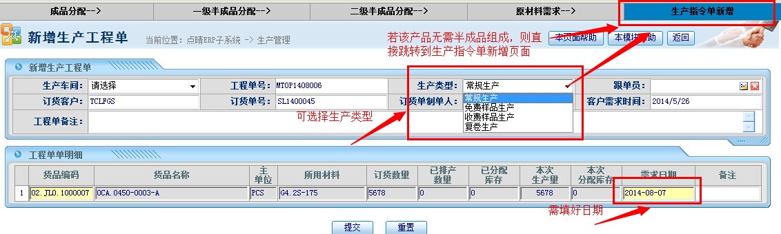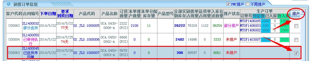 生产管理—排产管理—PMC排产管理;如下图示: 进入页面勾选对应销售单据所需物料再点击排产即可。 提交后则生产对应的生产工单,打印出来即可。如图: