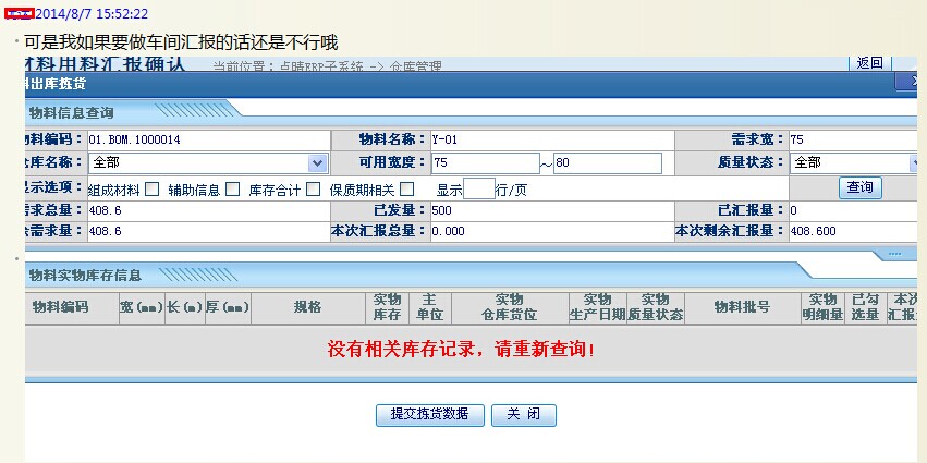 有用户在车间汇报时发现已发到车间的物料带不出汇报信息;如图: