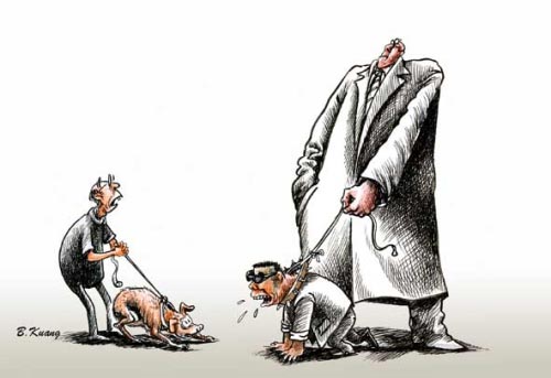 奴性或是中国人“劣根性”的最经典的表现形式。古时封建帝制,皇帝以下的,全部称为奴才,唯皇命马首是瞻。虽然现在讲民主,但在国民心底深处,从来就不认为世上的人都是平等的。在他们看来,取得尊严的方法不是争取民主,而是怎样从较低的等级走到较高的等级。此外,很多中国人热衷于“拍马屁”,一旦遇到了自认为高贵的人,膝盖便陡然失去了支撑的力量,要不由自主地弯下去,那脸上便也陡然集聚了花一般的笑容,向对方百般献媚讨好。