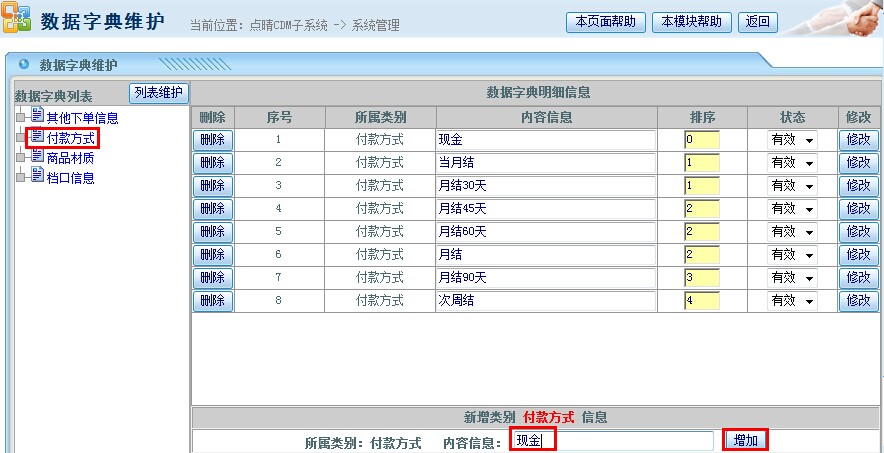 点晴模切ERP新增客户-财务结款类型维护