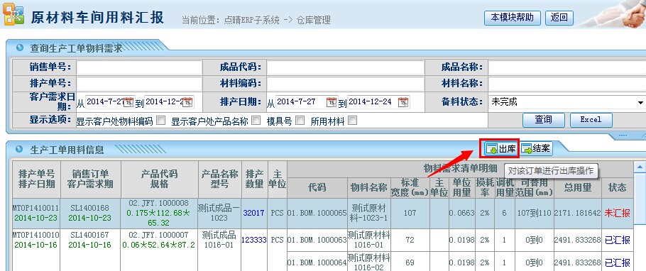 点晴模切ERP生产管理模块-生产用料汇报