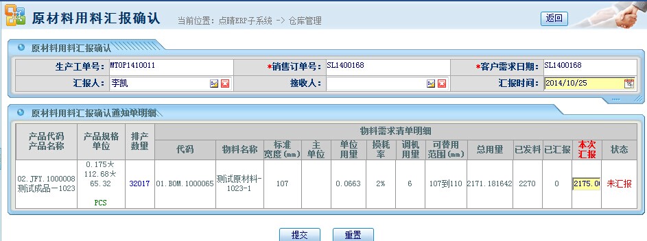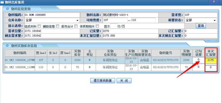 填入实际的用料值,点击提交拣货数据,回到如下图所示页面: