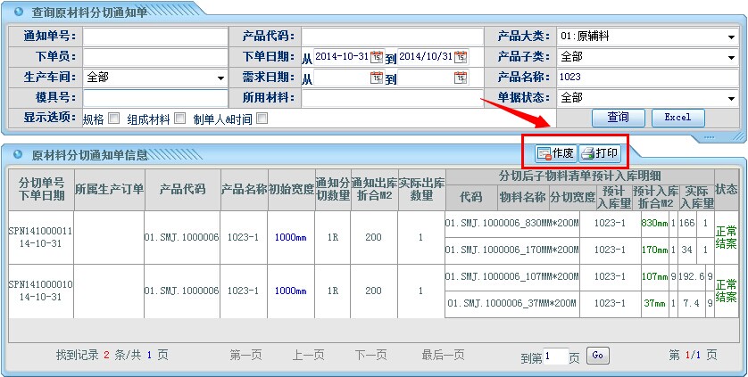 操作步骤:仓库管理——物料入库管理——物料分切管理——物料分切单管理;进入页面如下图所示: