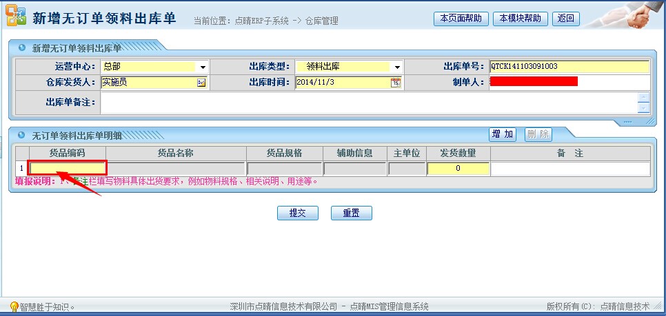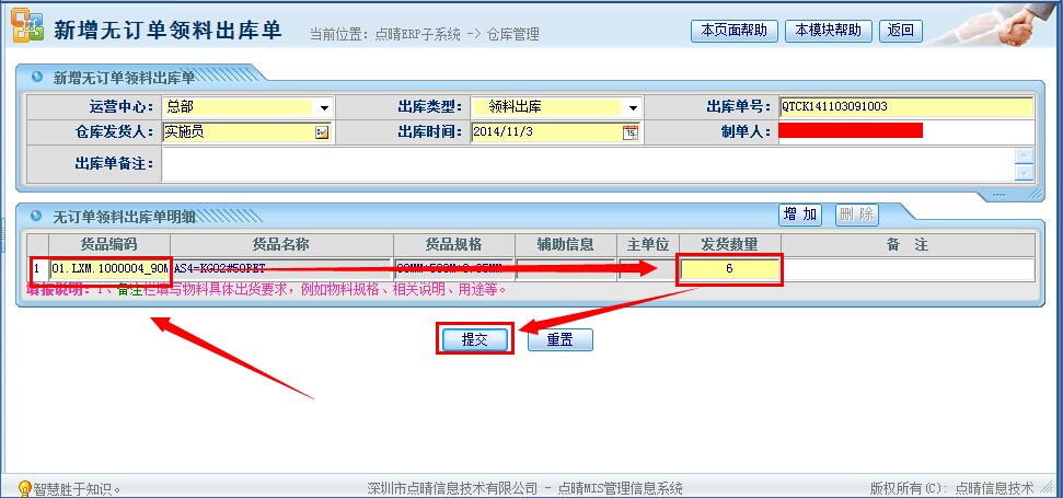 点晴模切ERP仓库管理—出库管理之无订单领料操作