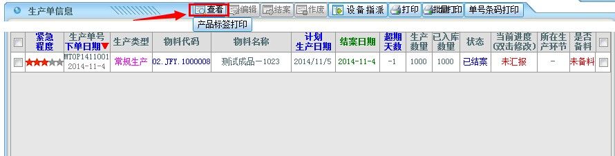 答:首先选中结案的单据,点击“查看”如下图所示: