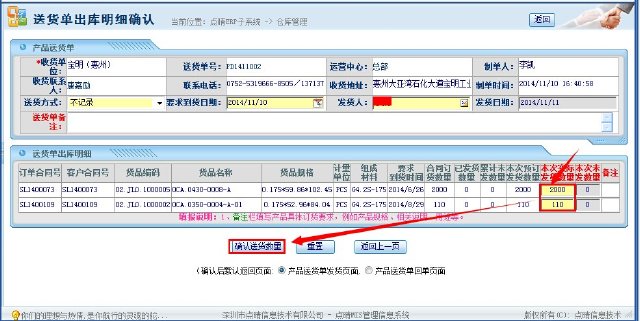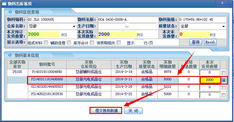 选择对应的发货批次之后,回到主页面;如下图所示: