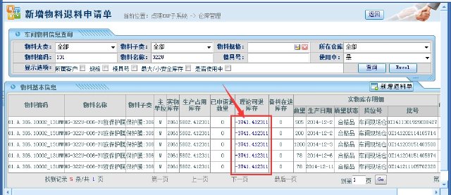 [点晴模切ERP]生产退料页面“理论可退库存”为负数是何原因?如何解决?