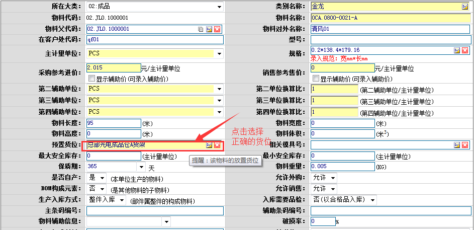 [点晴模切ERP]现有物料货位调整操作