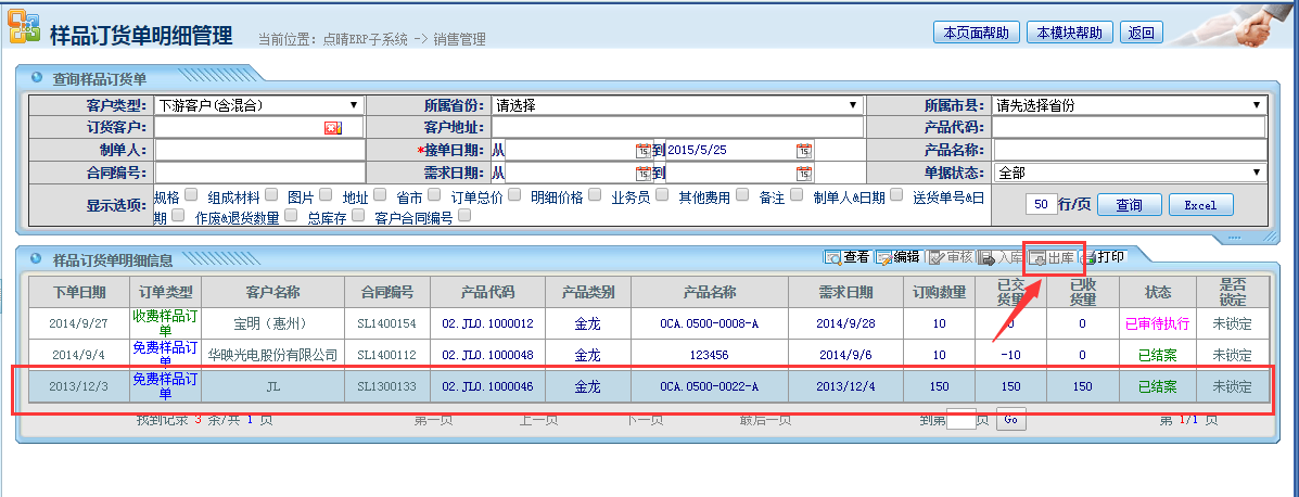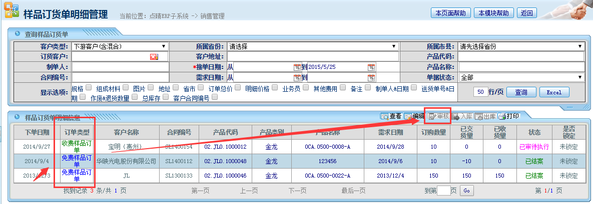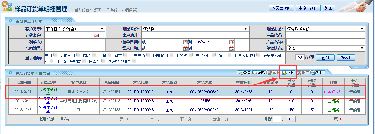 免费样品下单流程:1、录入样品料号资料--》2、下单样品订单--》3、样品设计--》4、样品入库--》5、样品出库 1、录入样品料号资料,操作与录入正式产品料号一样 2、下样品订单,操作与下达普通单一样,只是订单类别选择免费样品订单 3、样品设计,样品订单下达审核之后会自动流程到工程管理--》样品设计管理页面,工程人员对该样品单进行审核确认,如果想要样品更详细的资料可以录入该样品的BOM及工艺流程资料 4、样品入库,免费样品订单可以不用经过生产,工程人员可以直接在样品设计页面对样品进行入库。 5、样品出库,样品设计完入库之后,如果发货给客户后,可以不用去制作送货单,由工程人员在样品设计管理页面直接做出库确认。选择要出库的订单点击“出库”按钮既可以出库,前提是样品已经入库。 点晴模切ERP更多信息:http://moqie.clicksun.cn,联系电话:4001861886 该文章在 2016/3/30 17:43:49 编辑过 |