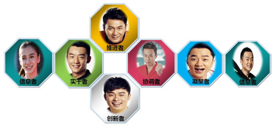 根据跑男团成员在任务中的表现,北森人才管理研究院将其与贝尔宾的9种团队角色进行了对应,发现他们7个人分别对应了6种团队角色。