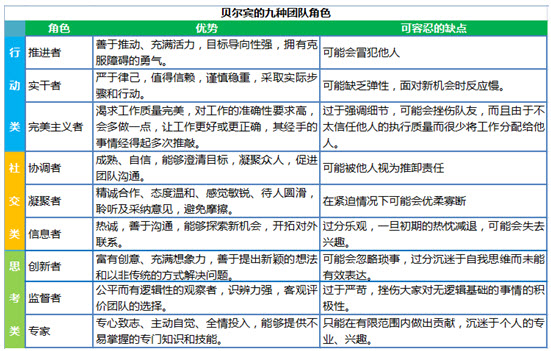 管理学家贝尔宾博士和其同事们经过多年的研究与实践,提出了著名的团队角色理论。他指出,高效的团队工作有赖于默契协作,一支结构合理的团队应由九种角色组成,合理、完备的角色搭配可以提高战斗力,鼓舞士气,激励创新。不同的团队角色组合在一起,会产生不同的效果,如同跑男中的邓超队和李晨队。