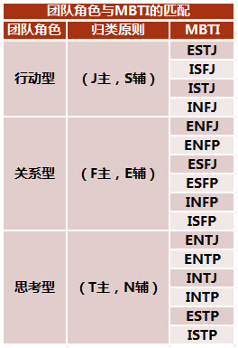 如果发现团队角色搭配不够理想,可根据成员的人格特征调适其角色。团队角色理论和MBTI理论具有内在一致性,团队角色类型与MBTI人格类型有对应关系。当诊断出角色搭配有问题后,可根据成员性格调整其角色,让恰当的人承担恰当的角色。如,当团队中缺乏推进者的角色时,可考虑由ISFJ等人格类型的人担任,一方面补充角色,另一方面实现成员外在行为与内在特质的和谐,更持久地促进团队提升效能。