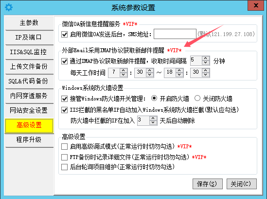 接收外部发过来的邮箱Email延迟太高了,别人发了好久才可以收到,有什么设置能快点? 【学仙】点晴客服 2015-08-17 10:06:58 点晴OA接收外部Email是通过IMAP方式收取的,需要用户点击进入Email模块,才会触发收取外部邮件动作,默认没有后台自动收取外部邮件的功能。 如果需要后台自动收取外部邮件,可以购买点晴MIS信息通PC客户端或手机APP、微信版/钉钉版,点晴MIS信息通后台服务程序提供了外部邮件自动定期后台收取的功能。 管理员可以设置每天自动收取外部邮件的工作时间范围、收件频率等。 注意:上述功能必须在购买了点晴MIS信息通PC客户端或手机APP后才会提供,详情参见:http://im.clicksun.cn