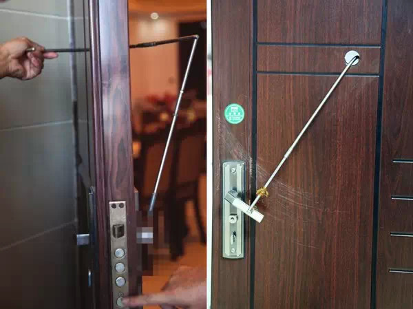 1、在家住 很多家里安装的是一体化防盗门,只要按下门把手就完成了反锁房门,但这种反锁也阻挡不了开门的工具。 所以,当你一个人在家的时候,一定要记得把门反锁!给大门加个保险! 2、酒店住 你以为在酒店住宿就很安全吗?在酒店住宿时,也一定要记得锁好房门。否则像下面这样, 多危险!