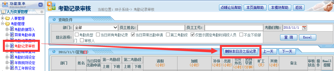 点晴永久免费OA系统考勤模块如何删除已经导入的考勤数据?