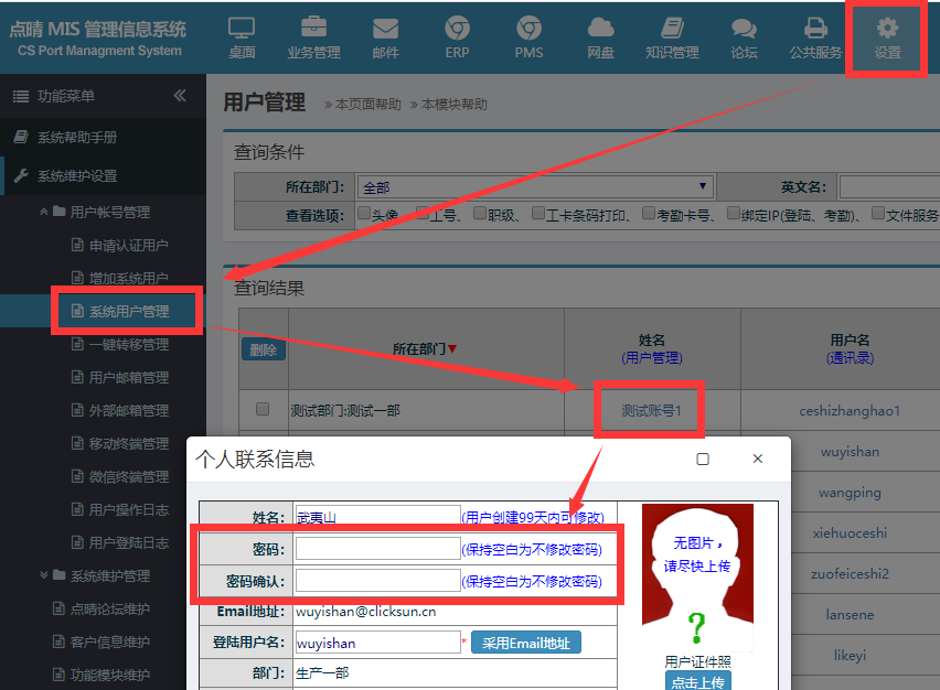 以管理员身份登录OA系统,点击:设置-》系统维护设置-》系统用户管理,找到此用户: