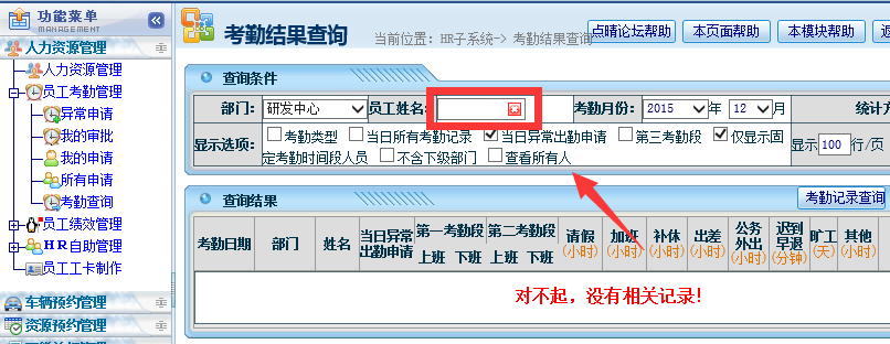 请问考勤结果查询界面,只能看到自己的考勤,但看不到下属的考勤结果?![]() 注意查询条件的设置,系统默认是显示本人的考勤结果。并且可以查看自己的下属考勤结果,无需特别设置权限: ![]() 如果需要查看所有人的考勤结果,才需要特别设置权限: ![]() 该文章在 2015/12/3 15:55:40 编辑过 |