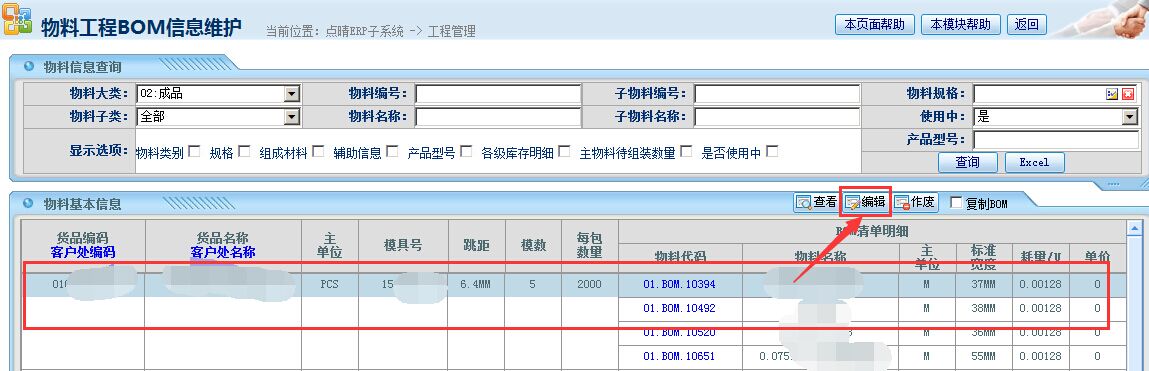 点晴模切ERP如何修改BOM中绑定的模具显示编号呢?