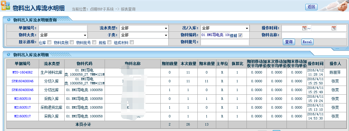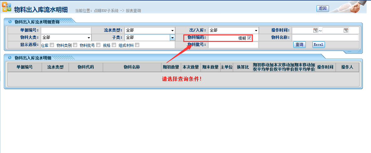查询方法:在出入库明细查询界面录入对应的编号进行查询; 点晴模切ERP更多信息:http://moqie.clicksun.cn,联系电话:4001861886 该文章在 2019/8/2 9:26:41 编辑过 |