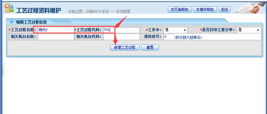 操作步骤:系统管理——工艺过程管理——新增工艺过程;如下图所示: