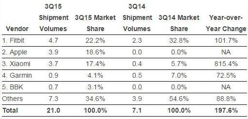 2015年12月,著名咨询公司 IDC(International Data Corporation)发布了第三季度全球可穿戴设备销量排报告。第三季度数据显示,步步高旗下的小天才儿童智能手表已经 以70万的销量排名世界可穿戴设备第五,仅次于Fitbit、苹果、小米、Garmin。