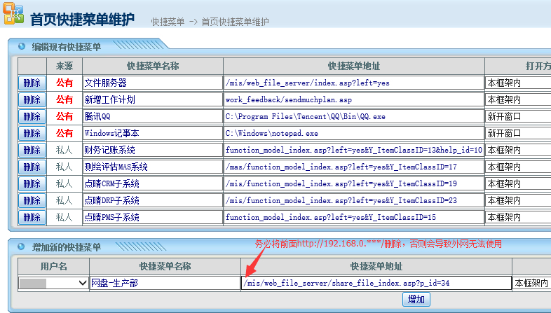 点晴永久免费OA如何在自定义快捷菜单地址里添加链接到网盘目录?